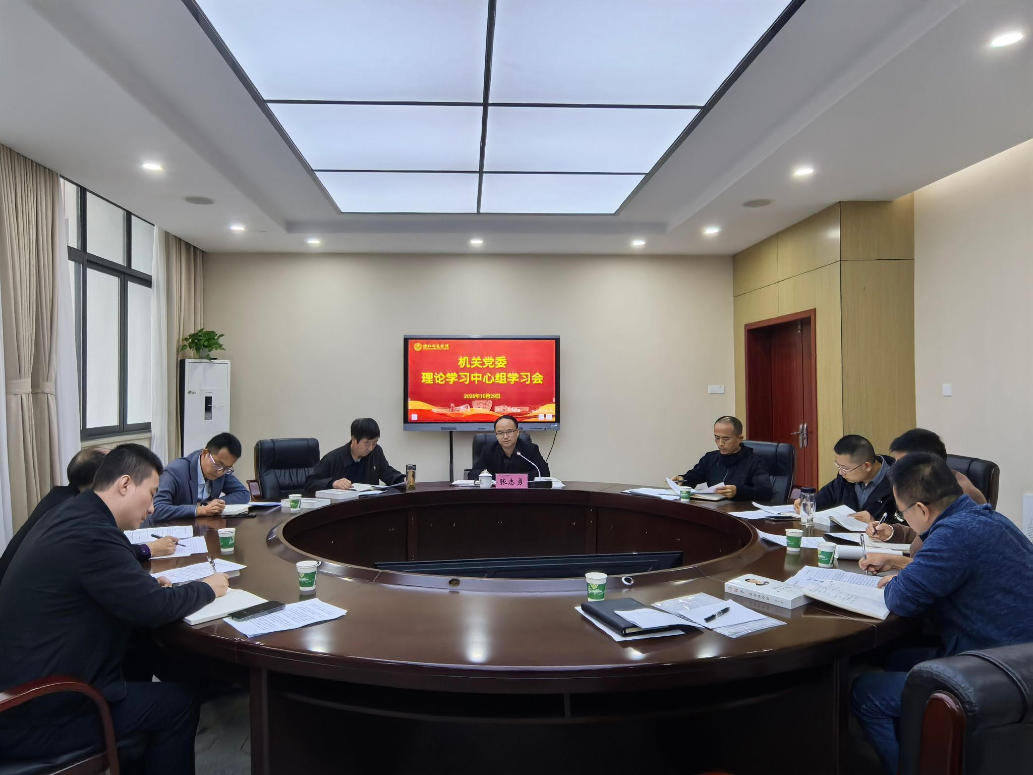 10月29日下午,机关党委在行知楼B206召开理论学习中心组学习会,专题学习党的二十届四中全会精神,深入学习《习近平谈治国理政》第五卷重点章节,部署贯彻落实工作。校党委常委、副校长、组织部部长张志勇主持学习会并讲话。